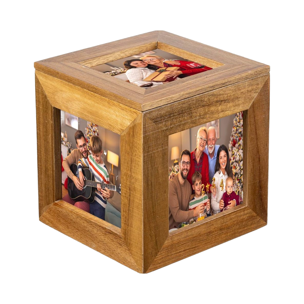 Mygift ลูกบาศก์ขนาดเล็ก5นิ้วทำจากไม้อะคาเซีย, กล่องใส่ภาพเงาที่เก็บของตกแต่งโต๊ะกลางโต๊ะทำจากไม้